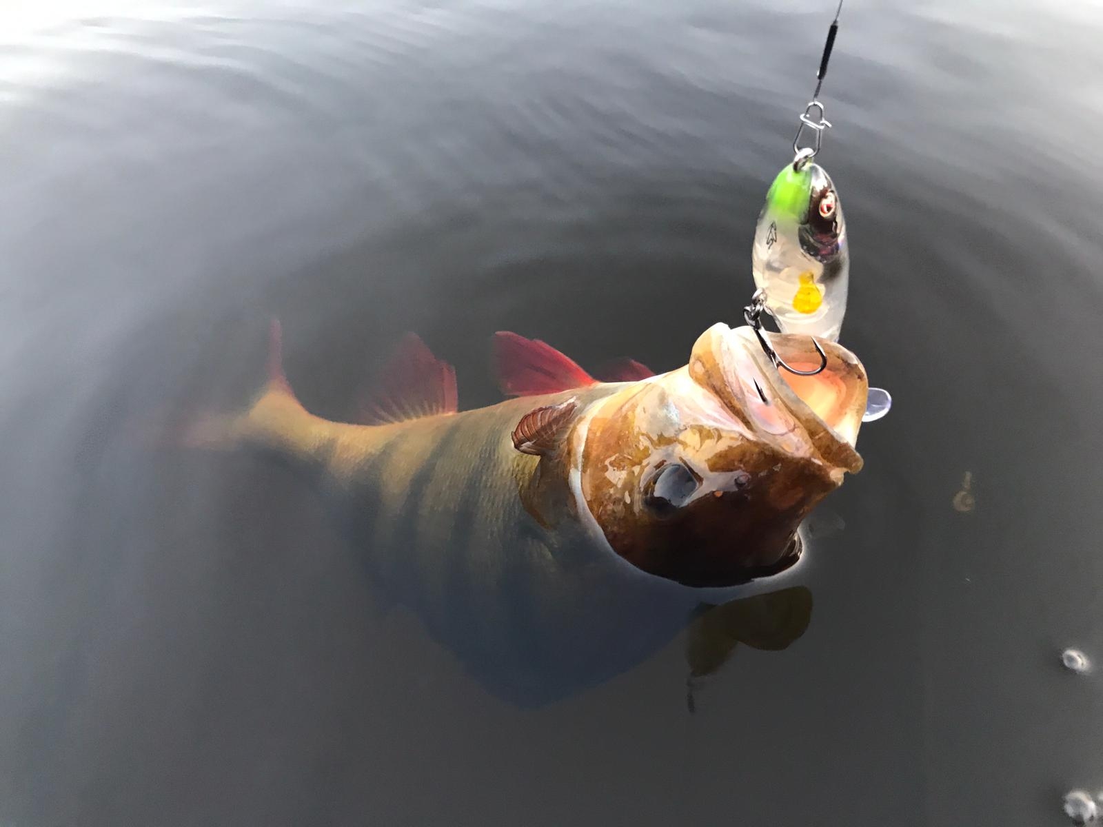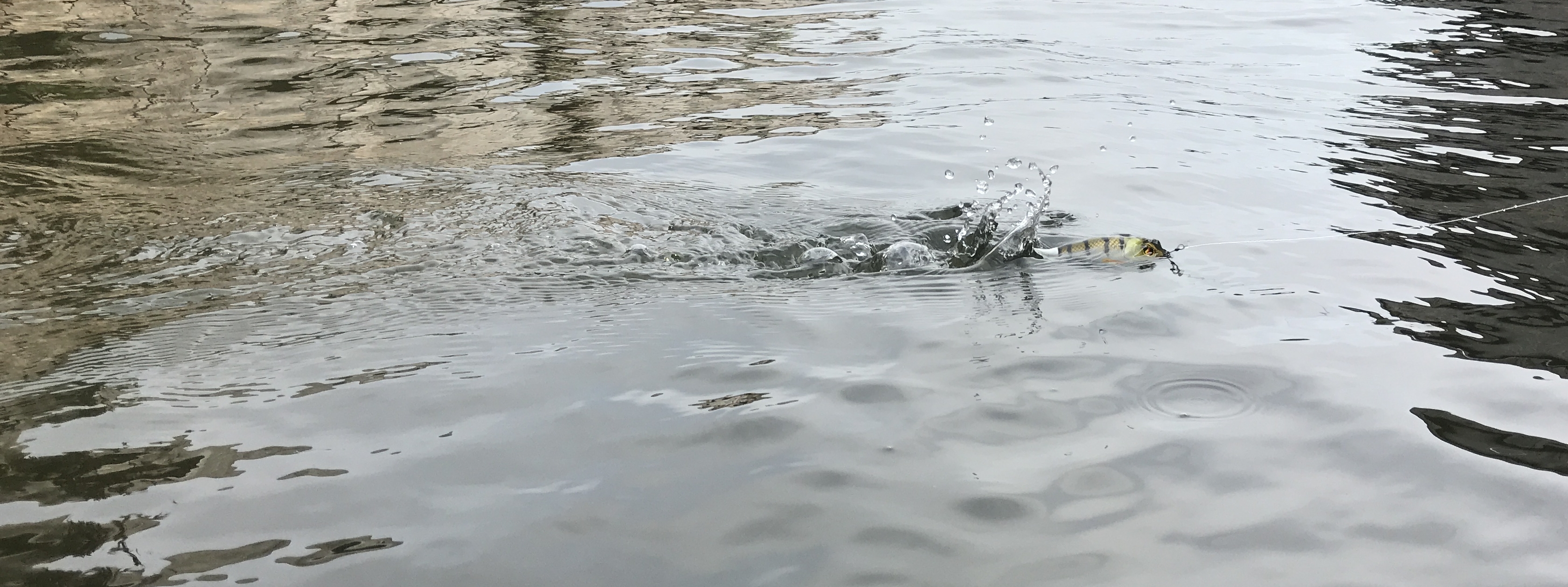 Afijn de vissen, wat vinden die er van? Op het eerste water kreeg ik een aantal aanbeten, waarvan ik er een kon haken en vrijwel direct weer verspeelde. Het is mooi om te zien dat de baarzen die aanbijten soms wel 3 tot 4 keer op je kunstaas knallen voordat ze gehaakt worden of afhaken. Misschien doen ze dit bij pluggen of shads ook wel, maar in het oppervlak is dit een fantastisch schouwspel en maakt de gemiste aanbeten al helemaal goed.